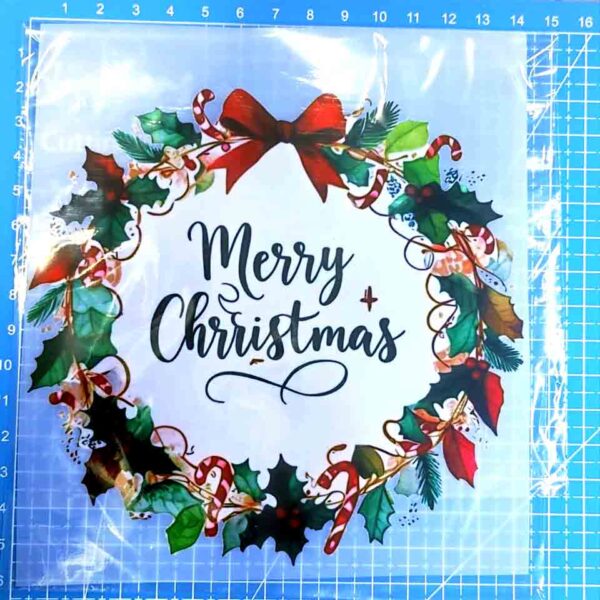 Transfer DTF Corona de Navidad con Texto “Merry Christmas” 14 x 15 cm – Ideal para Cojines, Bolsas y Decoración Textil