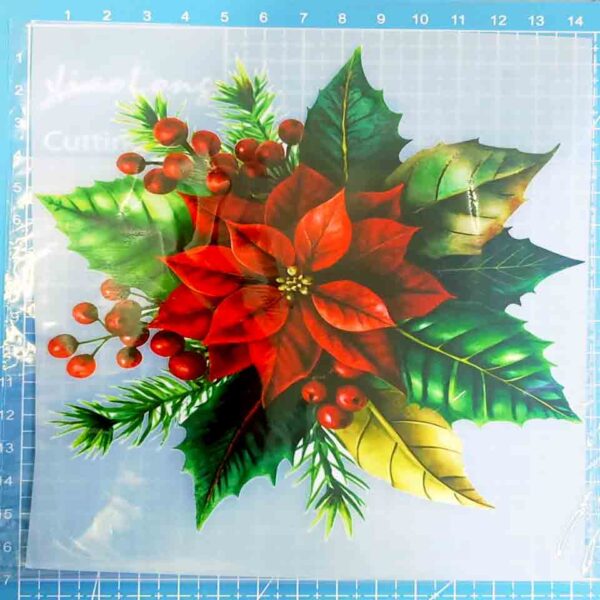 Transfer DTF Flor de Navidad 14 x 15 cm – Diseño para Cojines, Bolsas y Decoración Textil