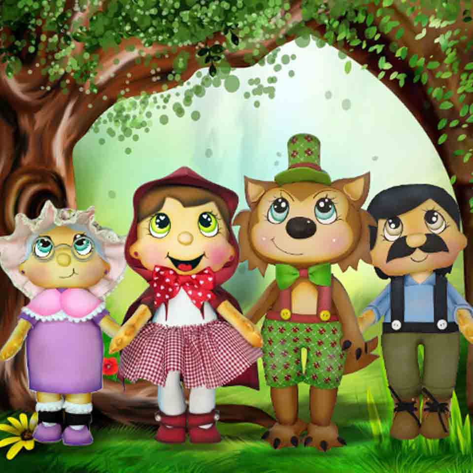 Este es un Kit de Moldes Digitales Descargables para recrear a los cuatro personajes principales del clásico cuento Caperucita Roja en la técnica de muñequería plana o 2D, usando Foami (Goma Eva) o Fieltro.